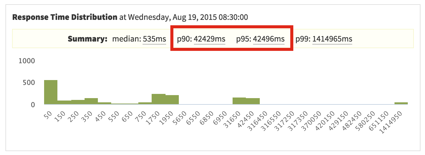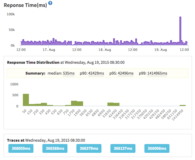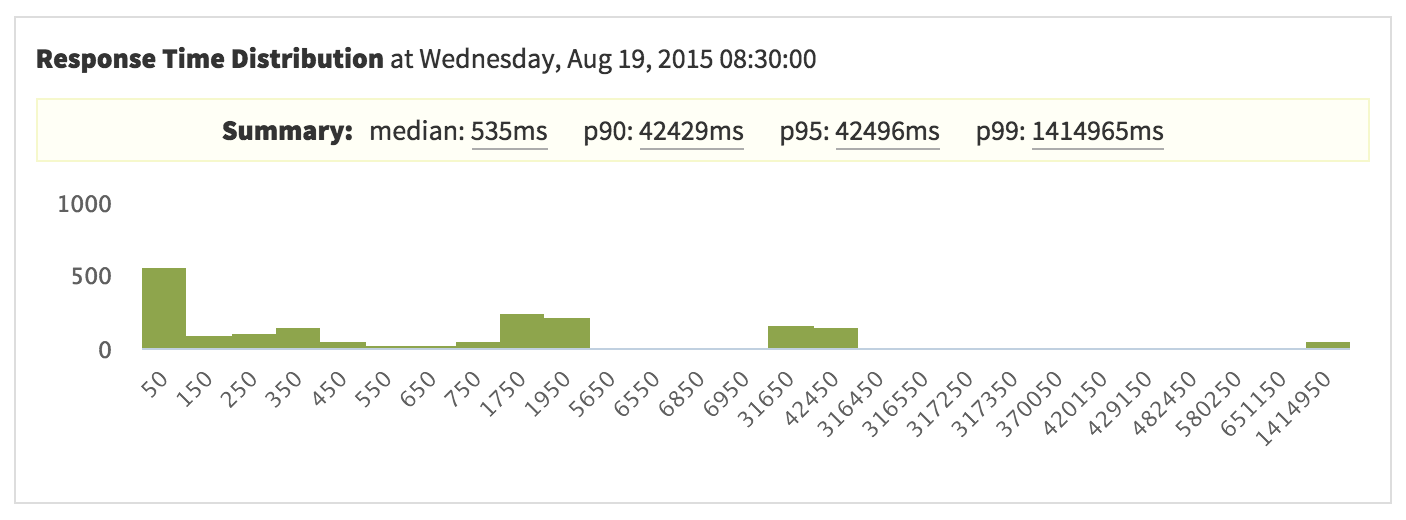 So, we can clicked on that spike. Then we'll get a response time distribution like this: