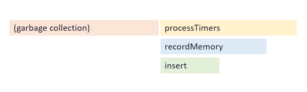 processTimes called the function recordMemory, and recordMemory called insert. There is some empty space beneath recordMemory, and this represents the amount of time spent within recordMemory.